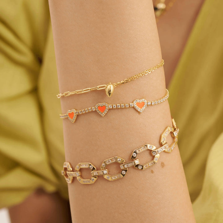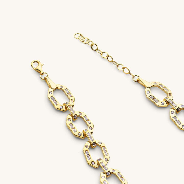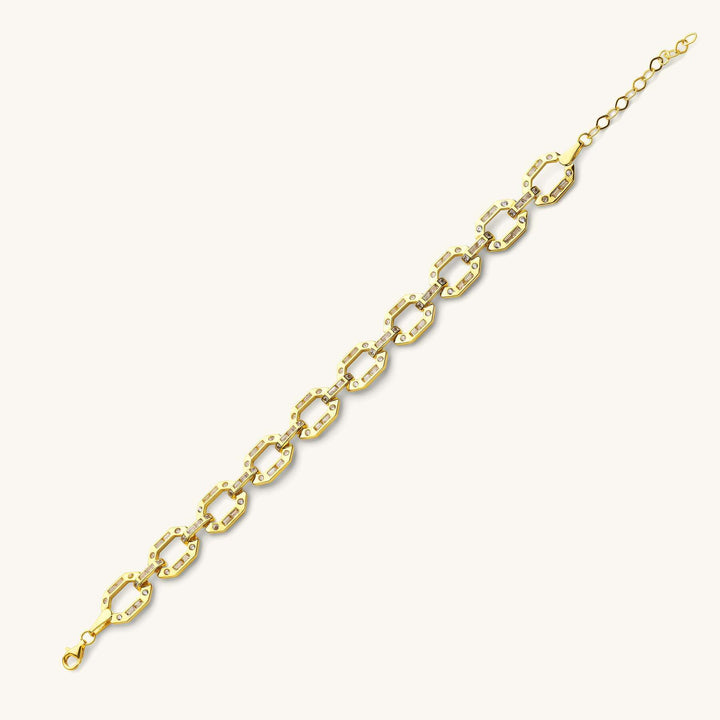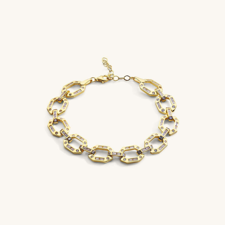 Altıgen Plaka Üzeri Baget Kesim Zirkon Taşlı Bileklik