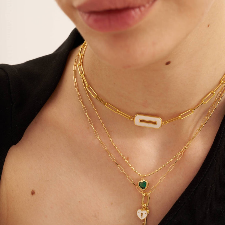 Beyaz Detaylı İkili Kombin Kolye
