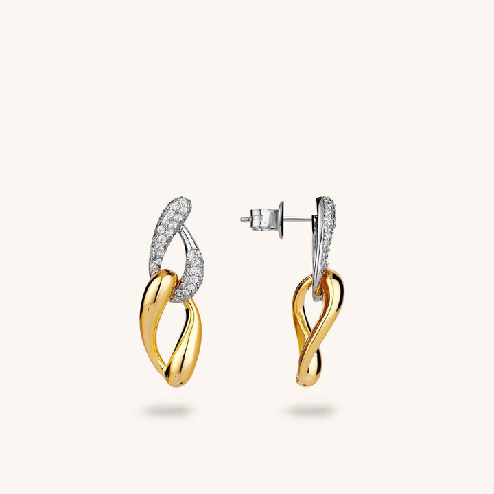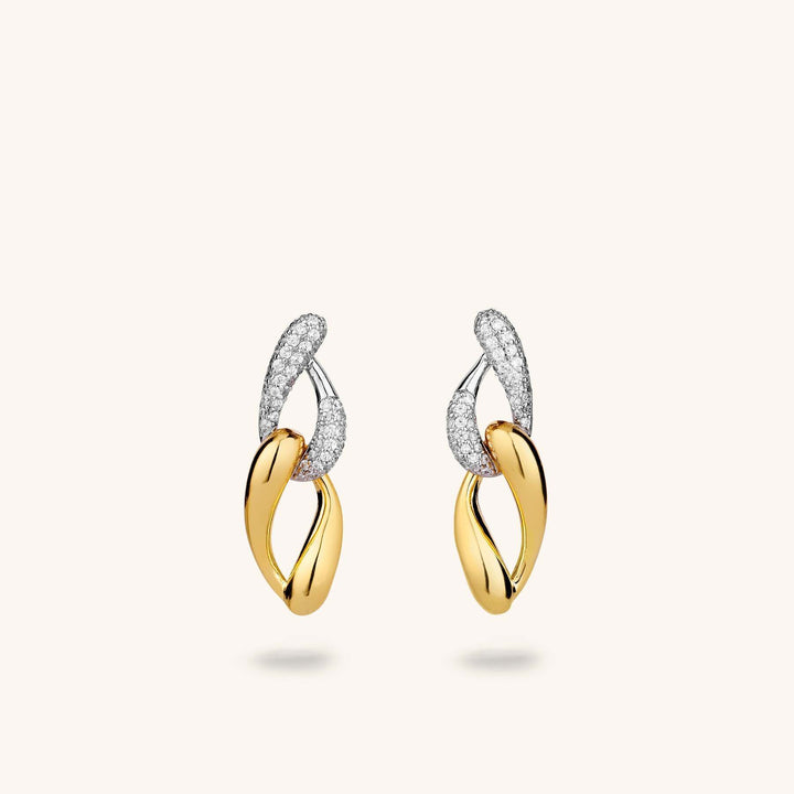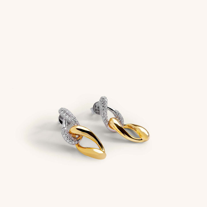 Çift Zincirli Zirkon Taşlı Sallantılı Küpe