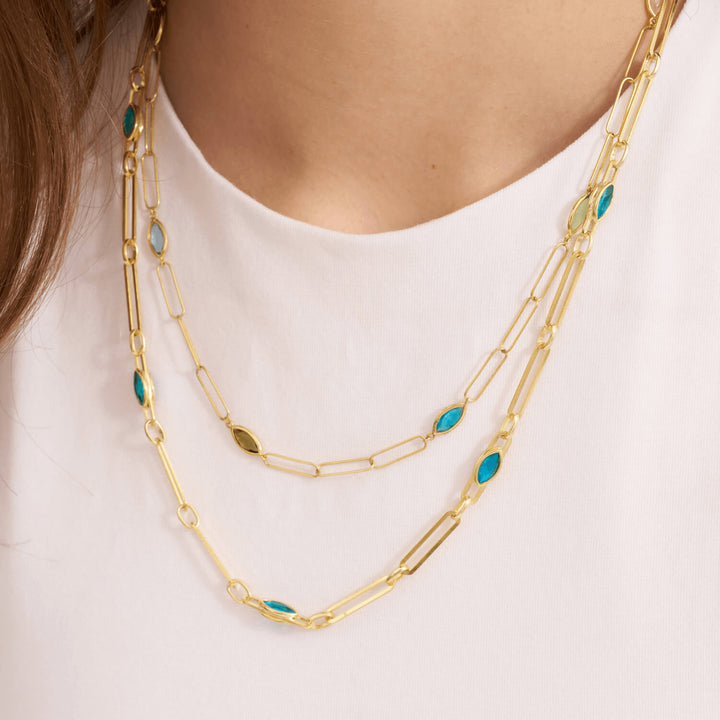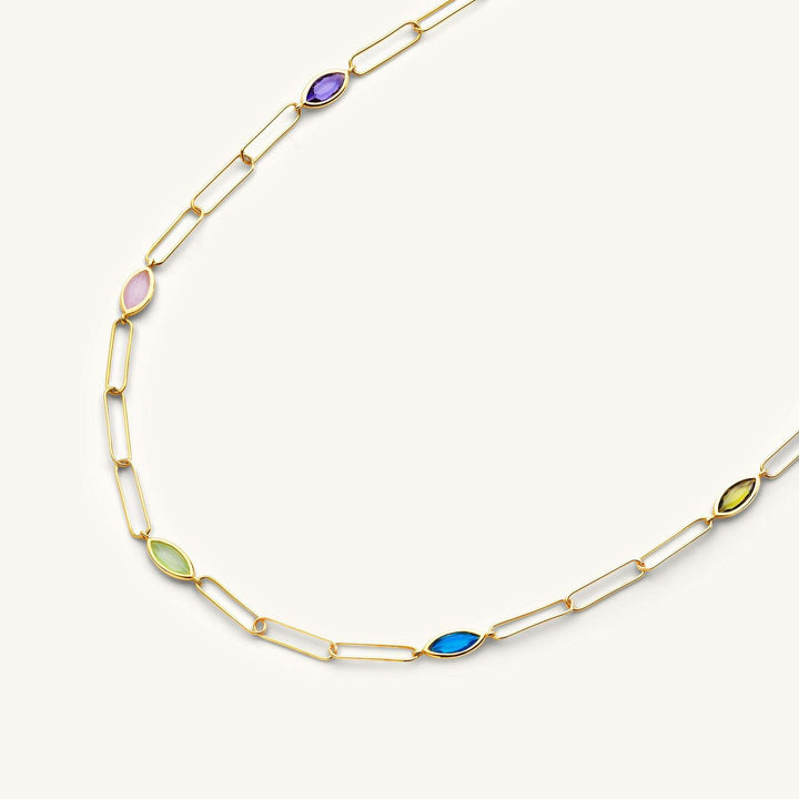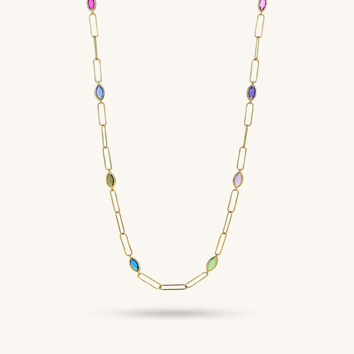 Çok Renkli Zirkon Taşlı Zincir Kolye