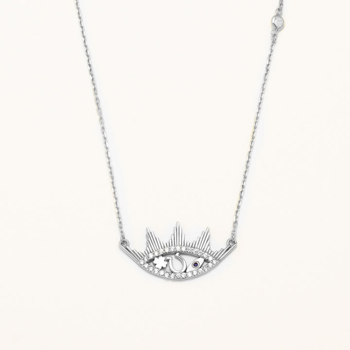 Göz ve Şans Kolye Zirkon Taşlı Gümüş Renk