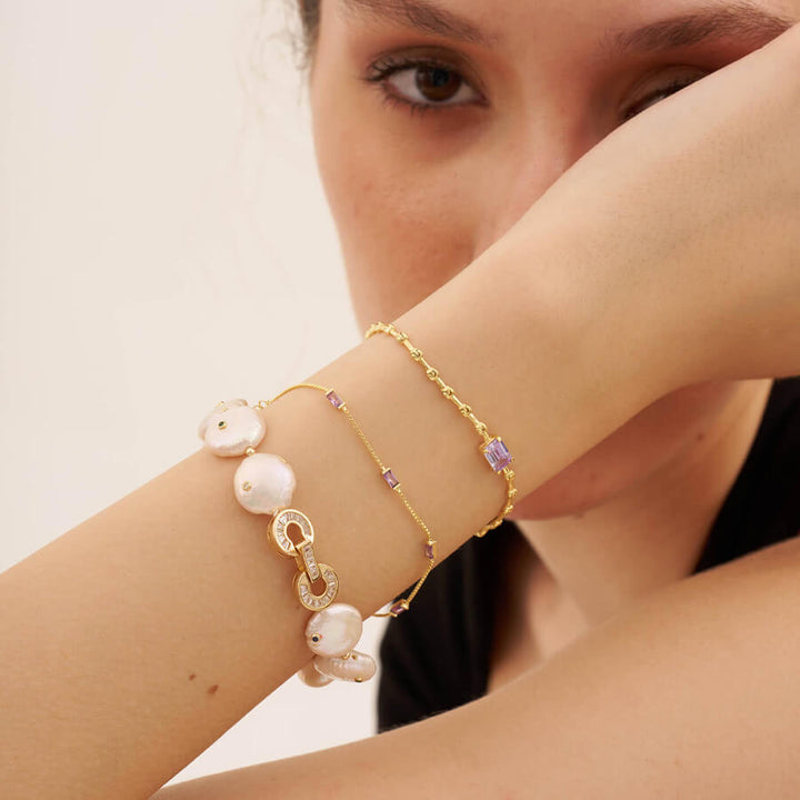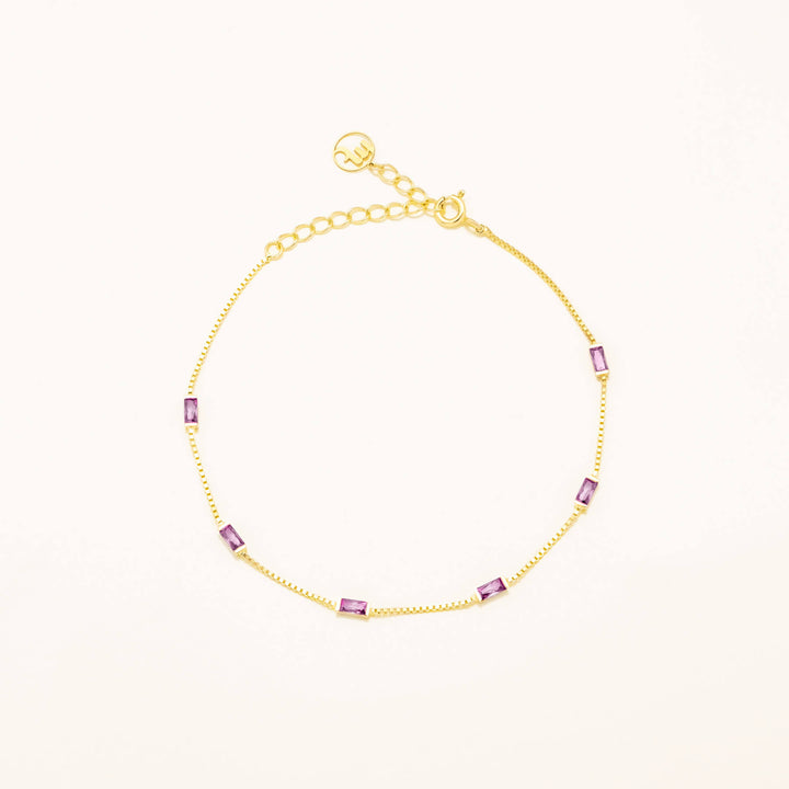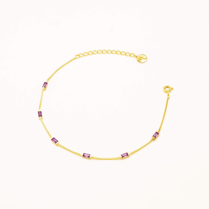 İnce Zincir Bileklik Mor Baget Zirkon Taşlı