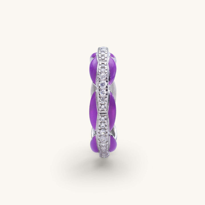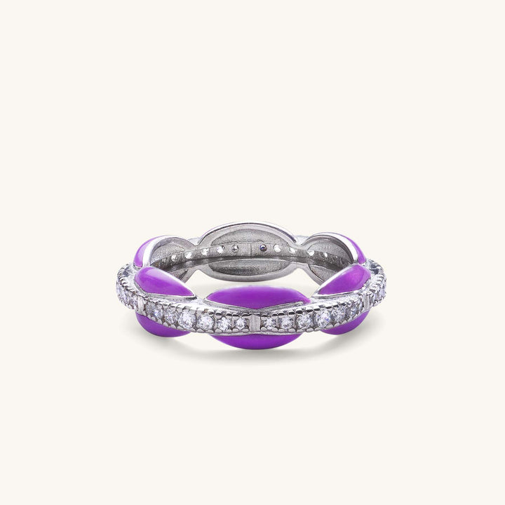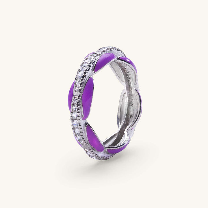 Mor Mineli Bombeli Zirkon Taş Sıralı Yüzük Gümüş Renk