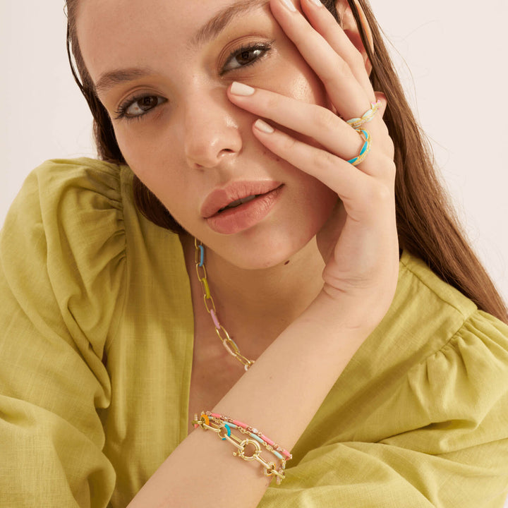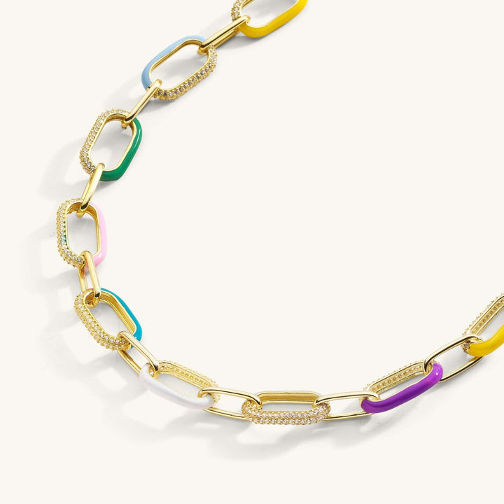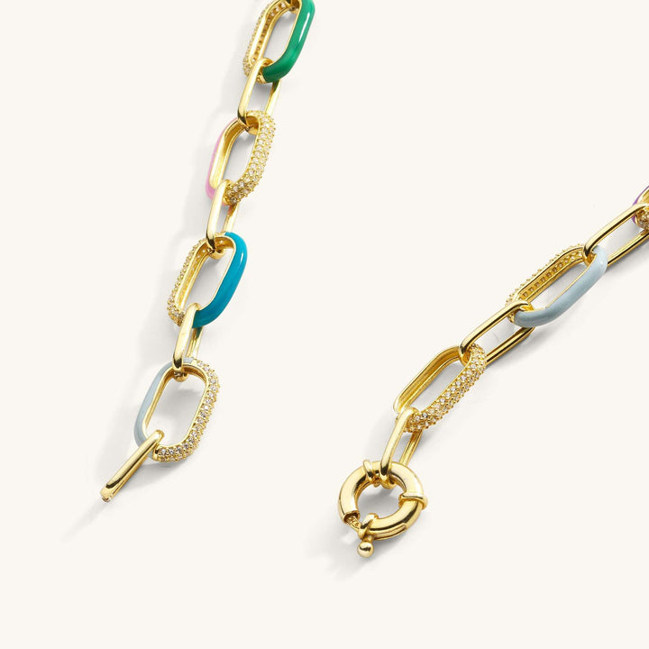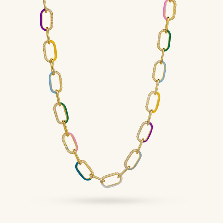 Renkli Mineli İç İçe Geçen İri Zincir Kolye Zirkon Taşlı
